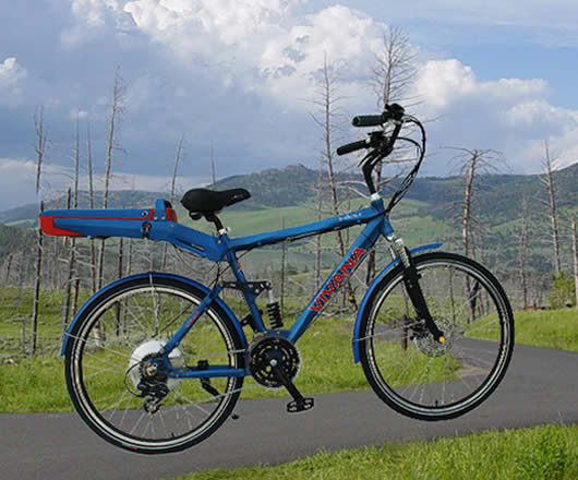 VIVANA Rosa, a mountain electric bicycle for men. Our unique integrated design of the frame, the rear rack and battery box is also present in the Rosa. This design reduces vibrations to the battery and prolongs battery life of your bicycle to help you climb that last hill. All bicycle components are created with high quality aluminum alloy which maximizes strength and stability while minimizing weight. Behind the front shock absorber, there's a shock absorber below the seat. What a wonderful plus!